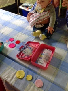 No, I did not bring my Big Shot. But I did die cut some of my 3D flowers before we left: Trinity's Flower (of course!), Flower with Heart Petals, Fringed Flower and Leaves. I also brought clips and headbands... just in case. Six month old Hunter is overseeing the process.