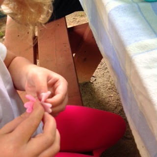 I think she is running out of room! We had a fun time making these hairclips. I love that Trinity is always ready to take on a new craft. We also did some stitching together. I had her draw a picture and then showed her how to make it into her own stitching pattern. It came out awesome.