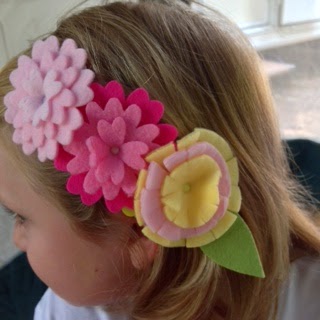 I cut flowers from fleece in different shades of a few colors. I like fleece because it is very inexpensive, available in a wide range of colors and prints and the edges do not fray. The texture is really soft and it also stands up to rain very well! Ask me how I know...