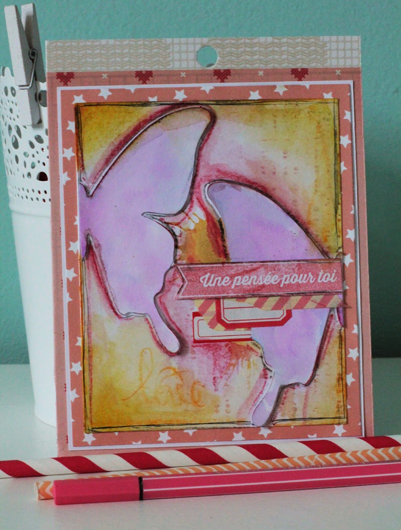 Add a text stamp “une pensée pour toi » on all your three cards and here you are!
