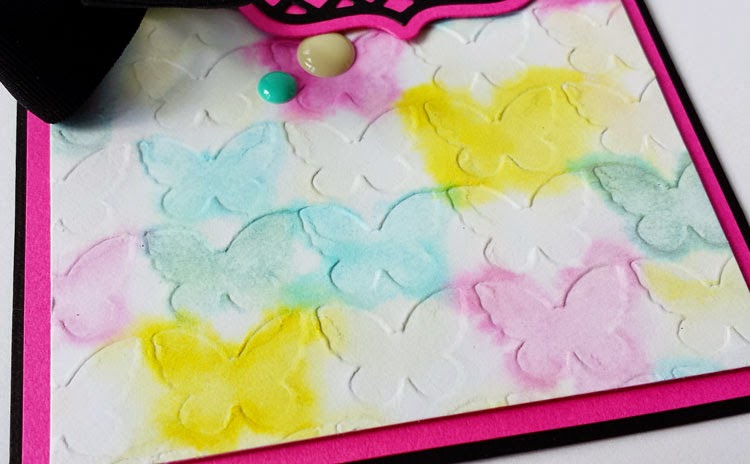 I like the fact that the colours bleed outside the lines of each butterfly - because you can still tell one butterfly from the other because of the debossing.