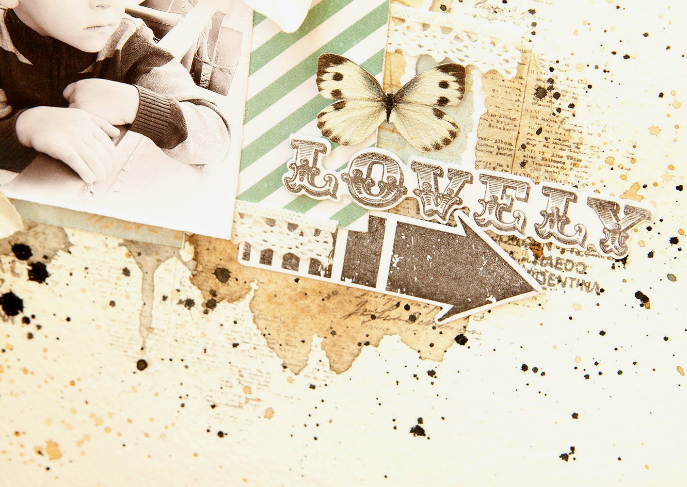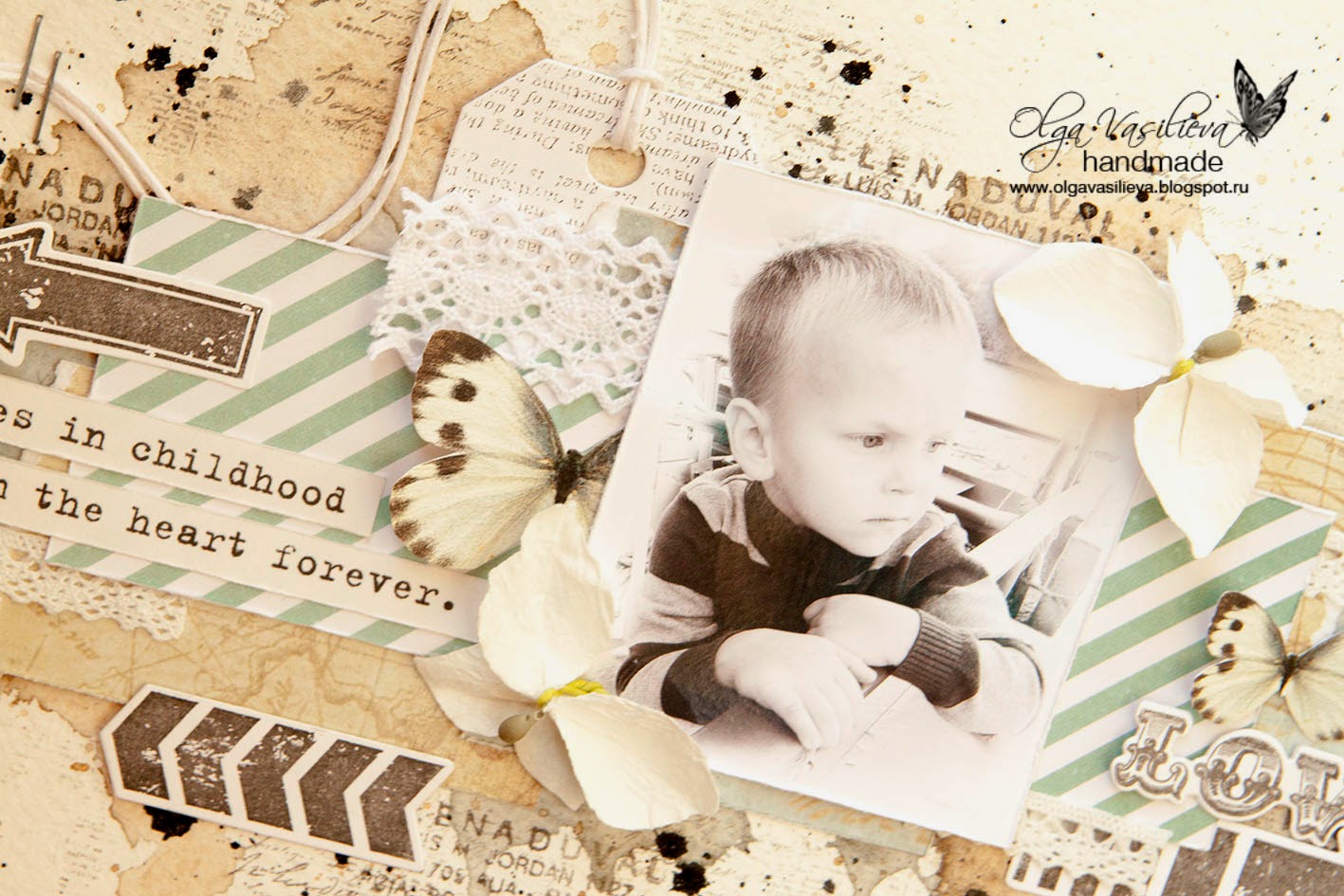 It's me again with a new project - a layout with my younger kid on the photo. I love create tags and use die-cut tags in my projects. So the tag I used in this project I created myself with the new die and stamped it. I also used wonderful set of dies and stamps - arrows.