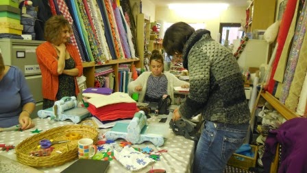 Before I show you the latest progress on 'Downton' I just show you a couple of photos from the workshop I taught yesterday at The Sewing Room in Cinderford, Gloucestershire, the shop - for Anita - you can see her in the second photo below