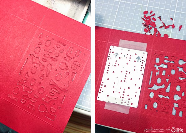 Before starting to die cut I made a few marks. Left, you can see the two arrows on the little strip to make sure that I die cut the Phrase cards all in the right direction (as you can see I did the same with the die with a permanent marker after I did a mistake). I also wrote Back on the left panel to make sure I did not die cut it.