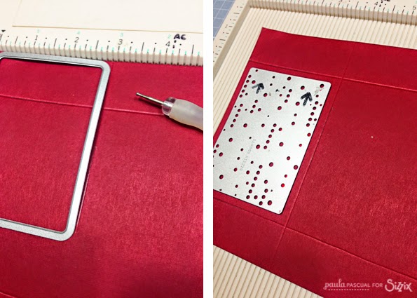 I started with the smaller of the two outer cards included in the set as a guideline on where to make the score lines, top, bottom and side always on the outside of the die.