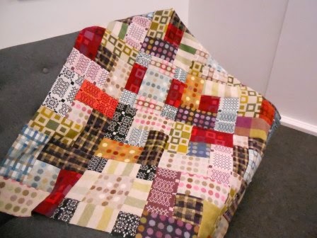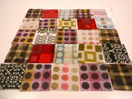 And just as I was going to finish this blog - one of my friends, Alex, suggested that there were enough pieces left to make a cushion so I trimmed the remaining pieces to 3 1/2" squares and laid them out like this -