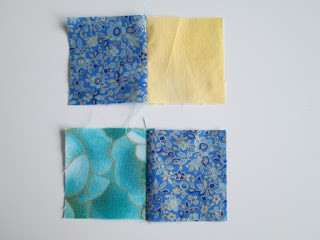 From medium fabric you need to be able to cut 2 x 2 1/2" squares and 2 x 4 1/2" x 2 1/2" rectangles.
