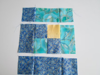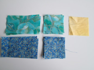 For this block you will need enough dark fabric to cut - 5 x 2 1/2" squares and 2 x 4 1/2" x 2 1/2" rectangles.
