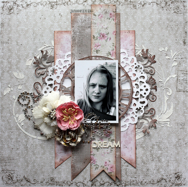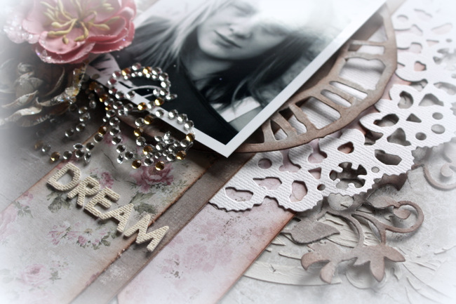It is Sunday again and I am here to share a new layout with you. This layout is in muted spring colours and includes yummy Sizzix dies. The papers are from Vintage Summer Basics collection by Maja Design.