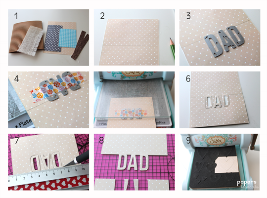 Como podéis ver la palabra "papa o dad" está fusionada con el papel de fondo. He preparado un collage con el paso a paso así como unas explicaciones.