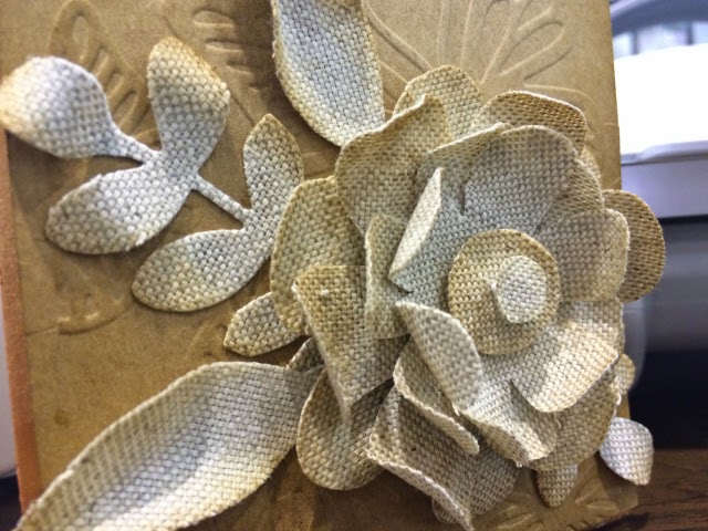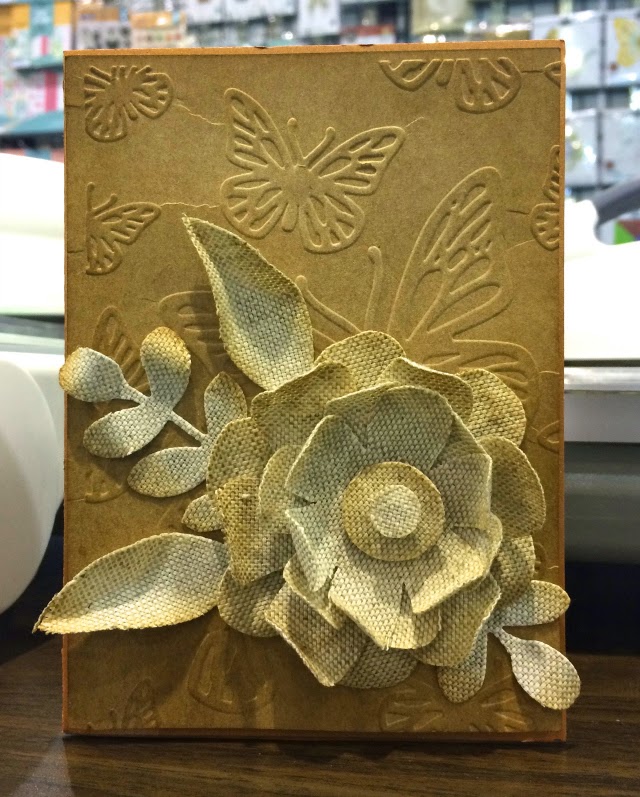 I had the new Big Shot Plus Starter kit and a lot of dies to play with, so I made a lot of samples for them. I want to show you one card I made using the Sizzix Big Shot Plus Starter Kit and some fabric. I love the flower of this kit!