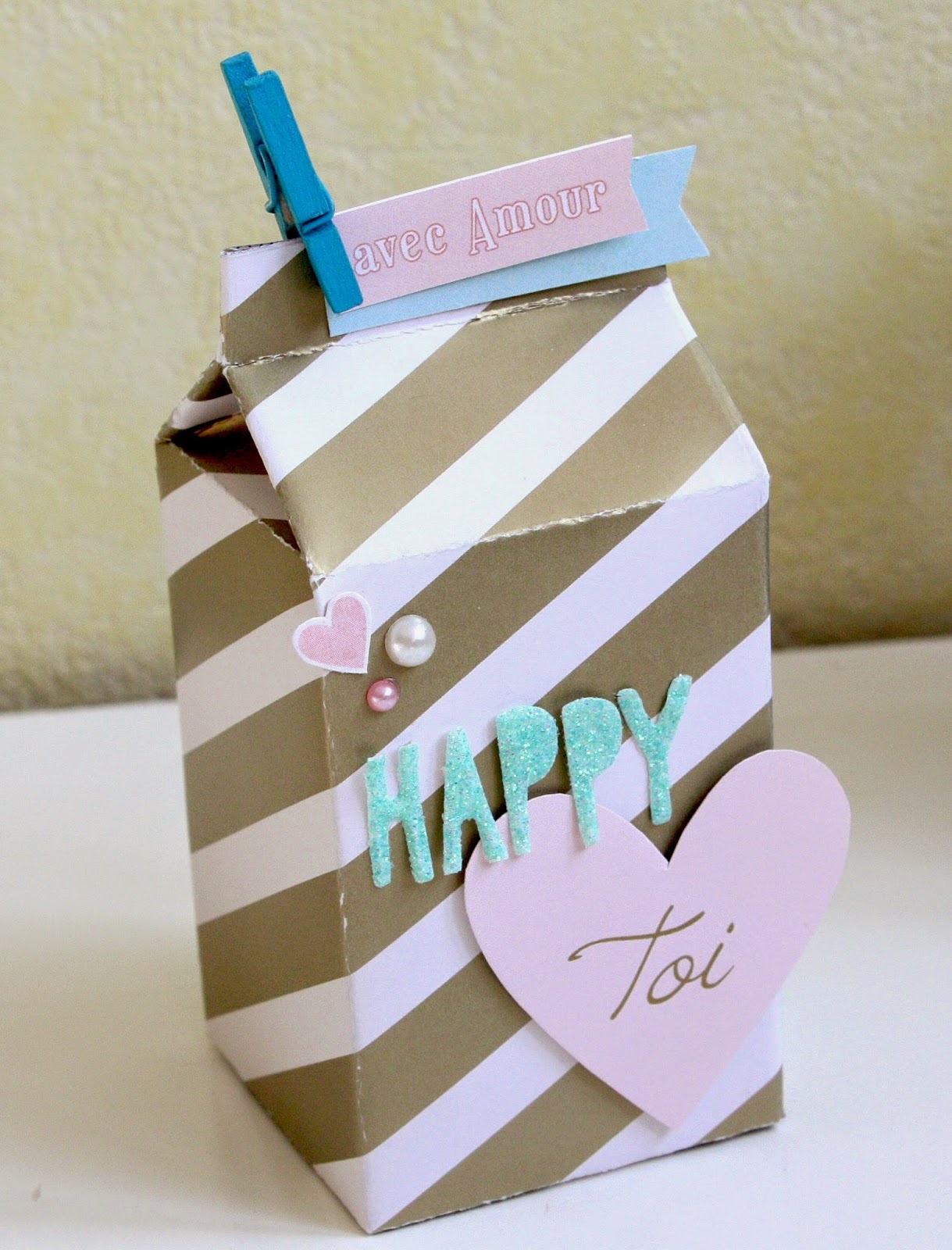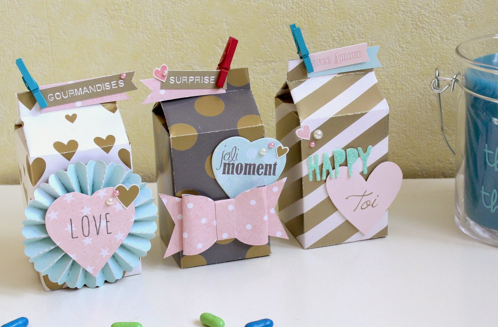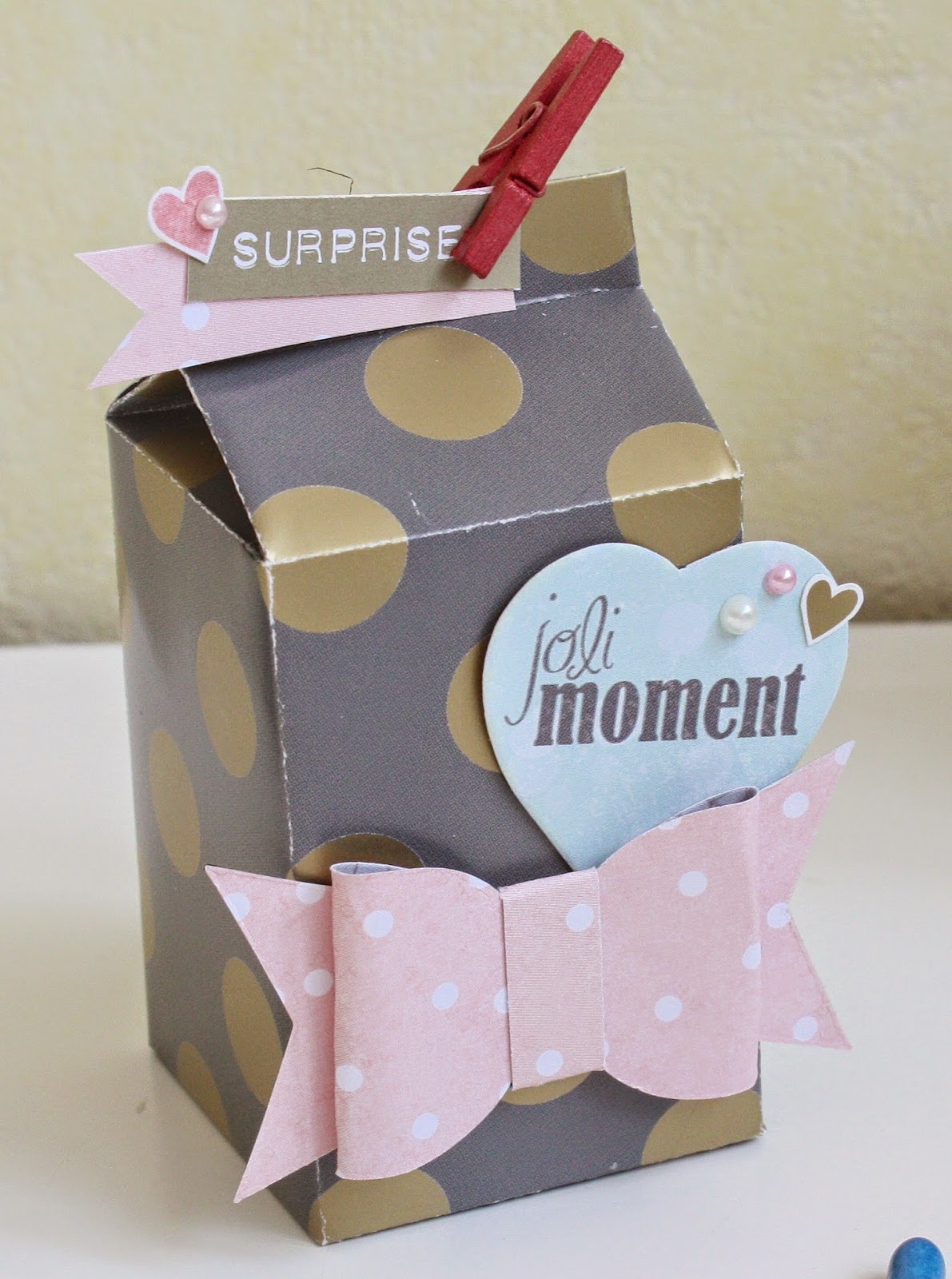 I realised 3 boxes, thanks to the Die "Box Milk carton", in Gold printed paper for the elegant and festive side.