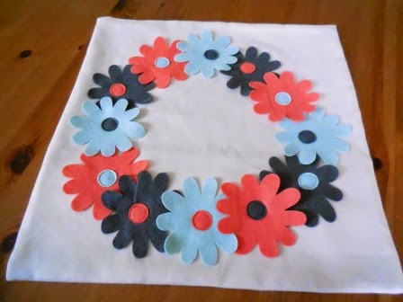 On my second cushion I decided to arrange the flowers more formally into a wreath -