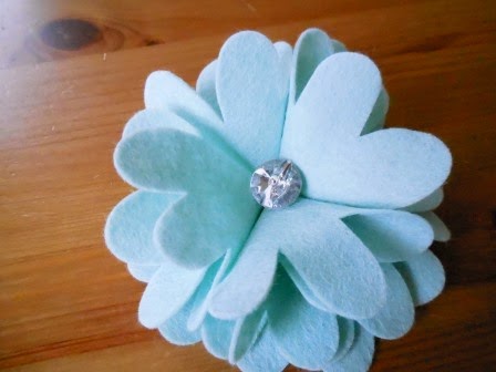 Each flower uses 5 cut flowers. Fold 4 of the flowers into quarters and stitch to keep in place -