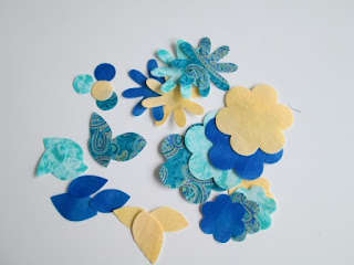 To create variety I chose 4 fabrics for the flowers and White fabric for the background.