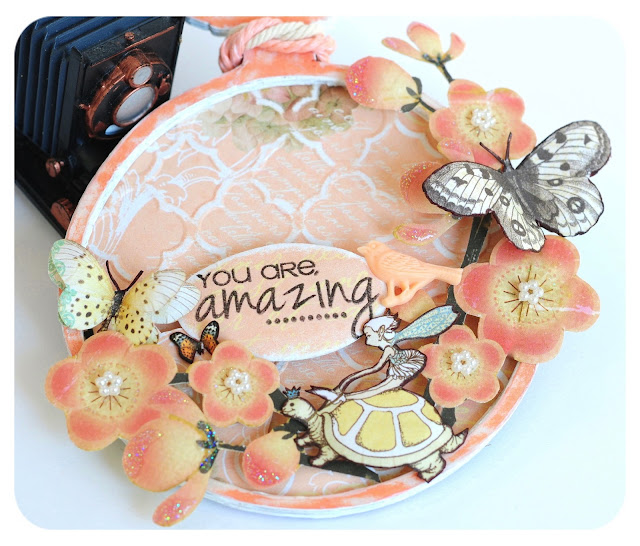 5. Ik heb de ovale Bookplate gestanst en alleen het ovaal zelf gebruikt zodat ik mijn quote kan stempelen.