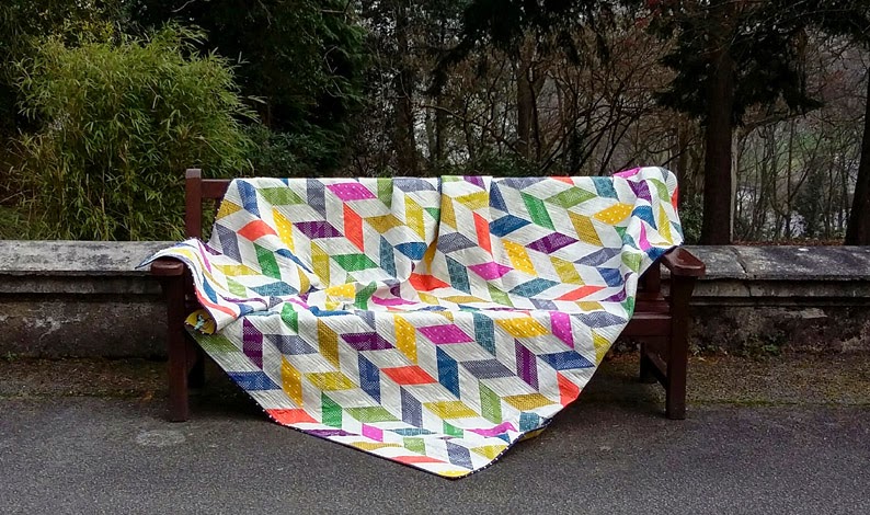 I'm so pleased with it, the vibrant colours really brighten up the whole room. It feels like a real achievement - it's the biggest thing I've ever sewn. It has taken a good couple of months to complete but without my Big Shot I think I'd still be cutting out triangles now!