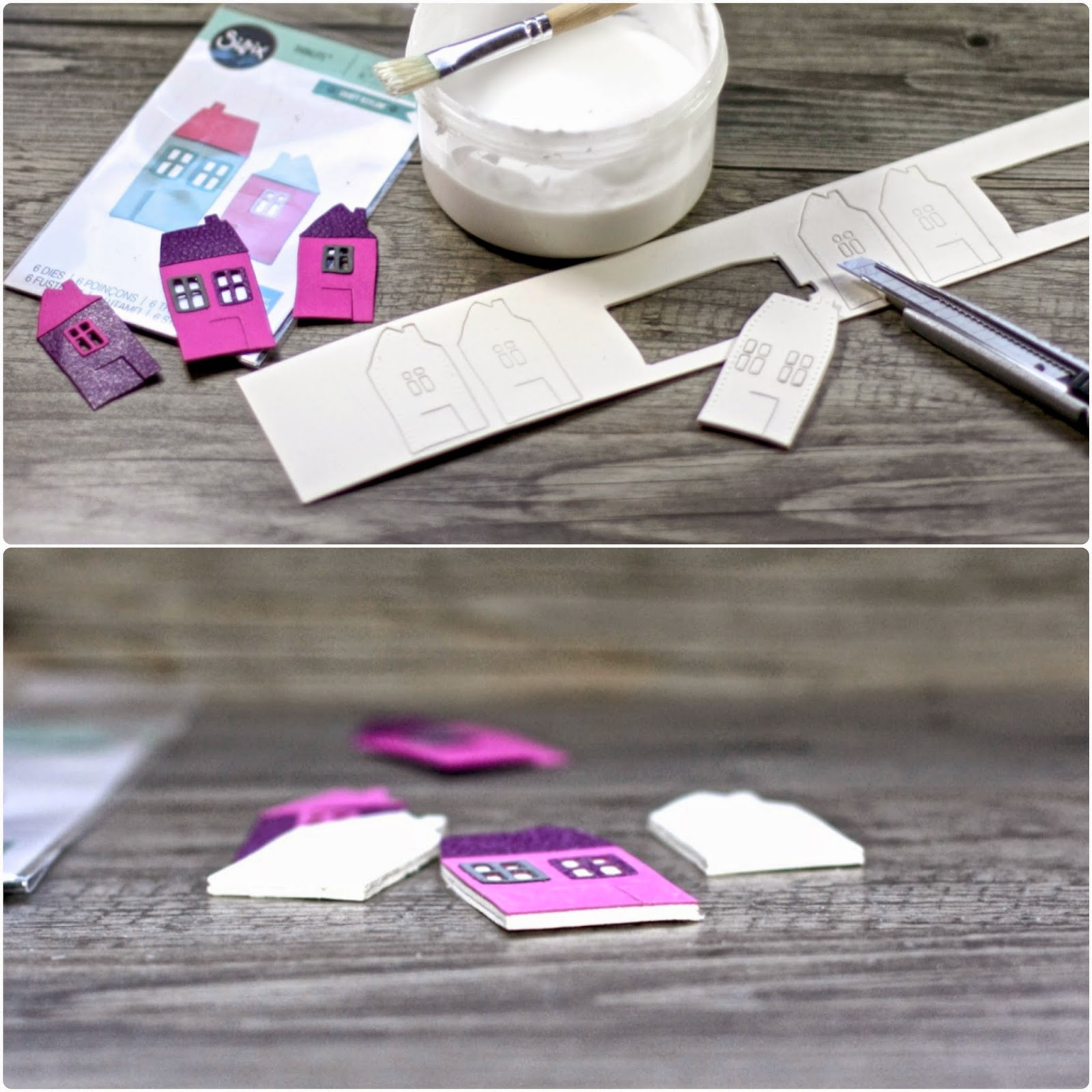 Afterwords, I used the SIZZIX Thinlits Die-Set 'Home sweet home' #660800 and pressed it into the same Paperboard. Of course, the Thinlits are too thin to use with a thick cardboard! But I cut out each image twice and helped a little by using a cutter. It worked easily!