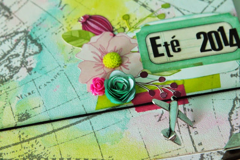 Pour cela j'ai collé des jolies fleurs en résine, ajouté un petit avion en métal à l'aide d'un lien élastique et enfin mon embellissement préféré du moment et bien de saison une jolie fleur en relief grâce au die Flower 3D !
