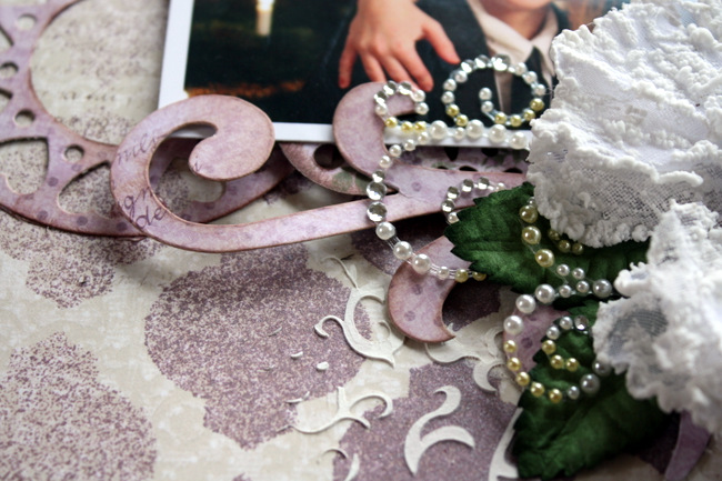 I have been playing with some lovely Sizzix dies and created a layout about my children. To create a flow I used the doilies from the 9 pk set called "Doilies, Lovely". And to frame the photo I used the swirls from the new "Classic Icons" set. The papers are from Maja Design.