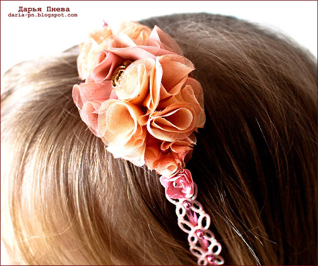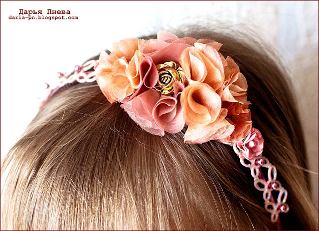 На улице весна, и мне хочется, чтобы моя дочка была самой нарядной в школе. Я решила украсить ее ободок на волосы, который в общем-то и был симпатичным, но с моими улучшениями заиграл и стал уникальным.