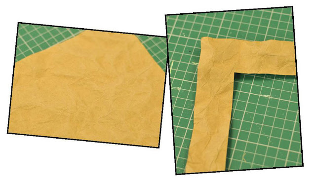I started by taking a piece of kraft card slightly larger than my chosen frame before scrunching it into a ball repeatedly until it was covered in cracks and creases much like a piece of leather would appear. Next, I used my picture frame as a template to mark out my area before cutting to size using a craft knife.