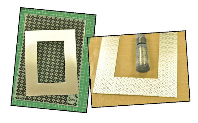 I cut the metal/card to size with a Stanley knife and placed it into the folder before running through my Big Shot Plus machine