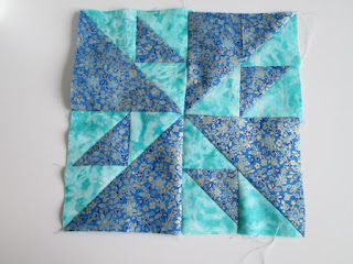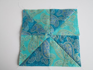 Let's start with the simplest of the blocks - the pinwheel - for this I used 2 fabrics