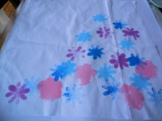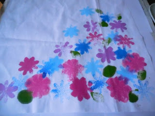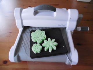 So I thought I'd have a little fun and see how fabric printing with sponges cut into flower shapes would work - now obviously I've used the amazing Bigz Dies and Big Shot Plus Machine -http://www.sizzix.co.uk/product/660020/sizzix-big-shot-plus-machine-only-white-gray because it's the one I have at home.