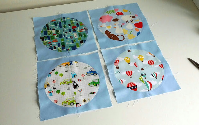 I've been wanting to use my Drunkard's Path dies for a while to have a go at a circles design and this seemed like the perfect project. I decided to make 4 circles using some printed children's fabric and see how it went. Having spent years sewing toys full of tricky curves as a result I don't really mind sewing curves and found that the quarter circles and background pieces went together really nicely. With the finished circle being quite large at 7in diameter, the curve isn't too tight and didn't feel awkward to manage instead it felt quite comfortable to sew.