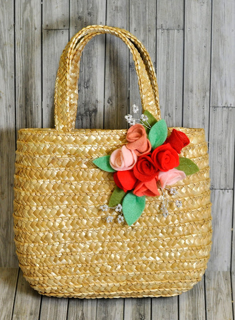 For the 3-D flowers Simply die-cut the large flower in several shades of red/pink felt and cut from the edge to the centre in a spiral before rolling them into shape with my tweezers.