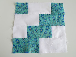 Join the 2 pieces together to complete the block.Next we need to lay out all the blocks to see if there is a balance of fabrics throughout - and then choose which fabrics need to be used for the final blocks to create a pleasing mix.