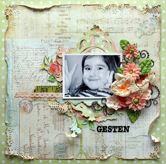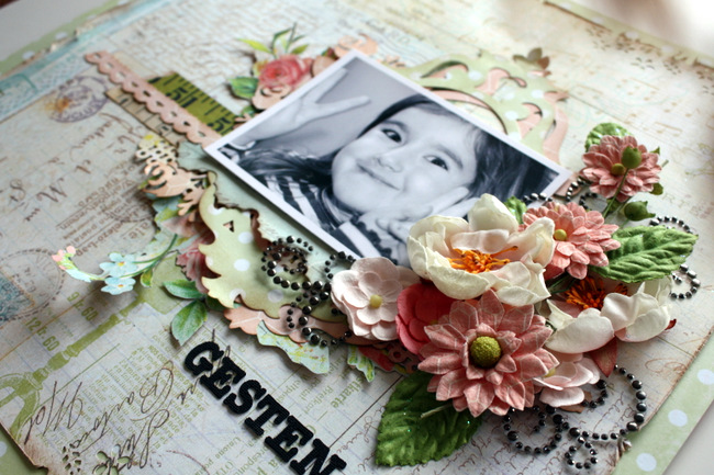 I have had such a nice weekend here, lovely weather and lots of family time. And I also made a layout in spring colours using some of the fantastic Sizzix dies. Here it is: