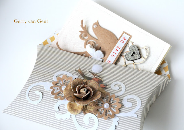 different embellishments including die-cut flowers and flourish.