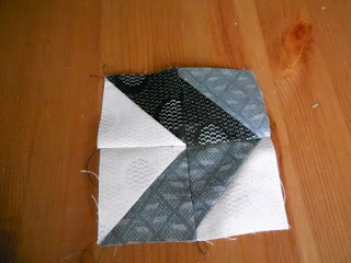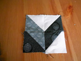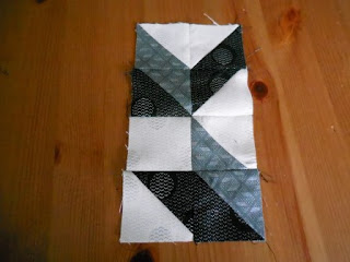 In a little while the block will be revealed - and I love it - it is complex but I thin worth the effort so to continue - join your rectangles together to make squares - you will make 4 of each - (remember to press the seams flat open) -