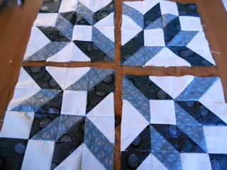 and then stitch them together to create your complete block -I know this block as Carpenters Wheel - and I love the 3-D effect. As my father was a carpenter it reminds me of him. I had hoped to make a table runner by making 3 of these blocks - but I don't have enough fabric so this will become a cushion - so look out for next week to see how this cushion becomes a quilt!!!