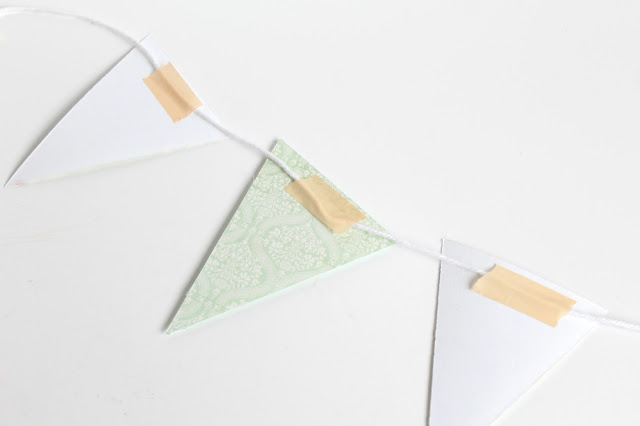 Once I had cut out my paper bunting flags on the Sizzix Big Shot Plus, I used a length of white cotton yarn and some washi tape to fix the flags on. Washi tape is great for quick projects because it is repositionable and doesn't leave a residue.