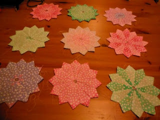 For the centres I bonded 2 layers of white fabric together and then cut 9 x 1 1/2" circles using the Big Shot http://www.sizzix.co.uk/product/660200/sizzix-big-shot-machine-only-white-gray and the Bigz Circle Die - 660113 http://www.sizzix.co.uk/product/660113/sizzix-bigz-die-circles-1-1-2