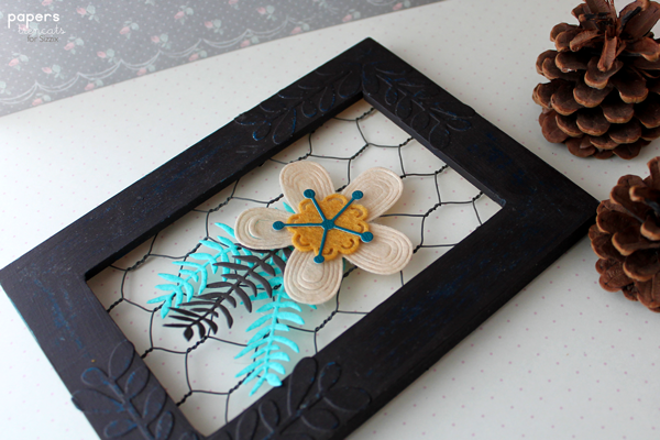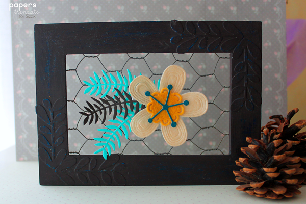 To make this rustic frame I’ve used some leaves from Sizzix dies, of course! And this beautiful new flower die, some acrylic paint, candle, felt and cardstock.