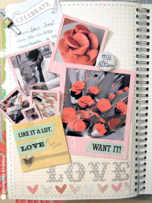 Y también tenéis unas cuantas fotos de mi página terminada. Me encantan esos pequeños marcos saliendo del sobre. ¡Monísimos!