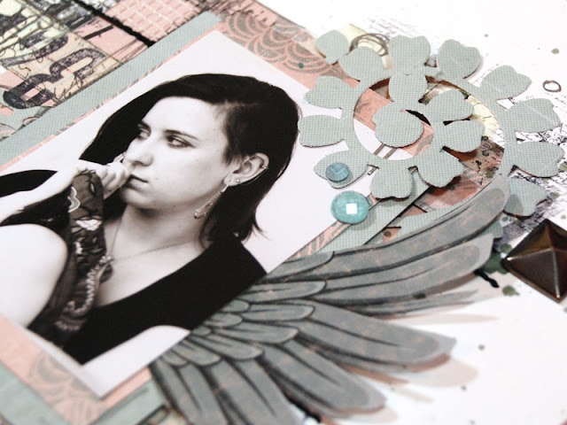 I wouldn't be myself if I didn't try something a bit different. This time instead of creating a sweet, pretty flower as suggested on die packaging (Bloom with Leaves) I used the cut out element as it was... somehow it reminded me a fern leaf and was a perfect balance for the Vintage Doilies I used on the same layout.