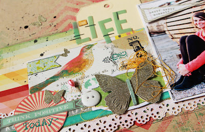Voici une page toute simple basée sur une multitude d'embellissements ( dies, tampons, boutons, papillons ) et sur un jeu de volume !