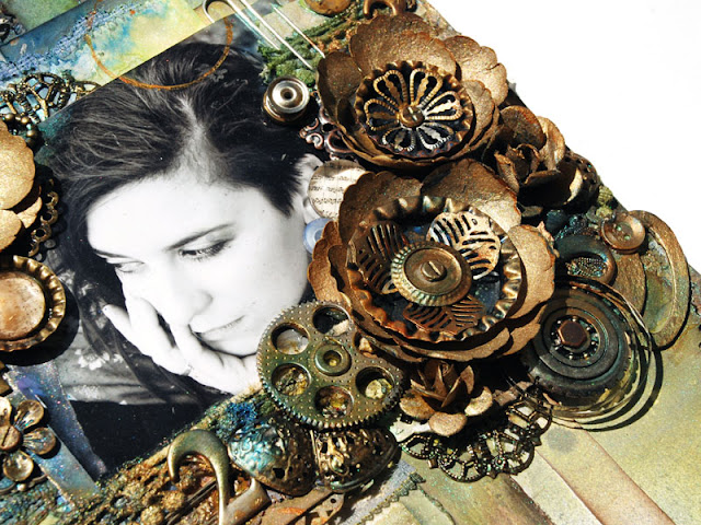 During this event I had the pleasure to use Sizzix products during 2 classes... and here I am today with a mini-photo relation from one of them "Steampunk Love". During this clas we were building, heavy, grungy clusters of embellishments on the base of 2 Tim Holtz Dies: 656639 - Sizzix Bigz Die - Elegant Flourishesand 658571 - Sizzix Movers & Shapers Die - Pocket Watch Frame. So, here we go!