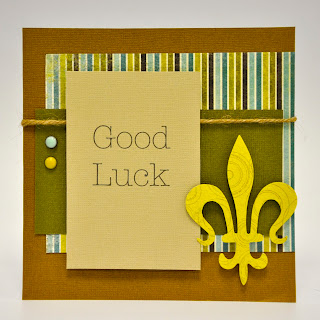 This very masculine card is tied with string and uses the Fleur de Lis motif found on the
