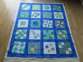 Now the next question is how to quilt it? I am quite a fan of stitching in the ditch because I don't want to detract from the patterns made - so i think I'll stitch around each block, and then see if I want to be creative on the sashing.