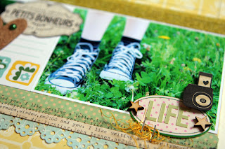 Here is a very fresh and colourful layout which is a kind of hymn to Mother Nature and spring time! I had fun working on a horizontal layout, a simple technique which always turns out great!