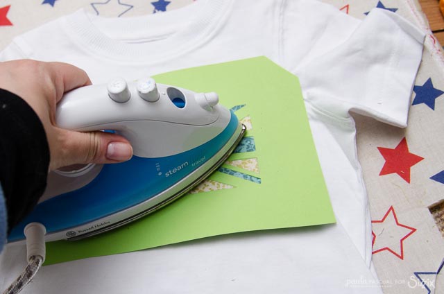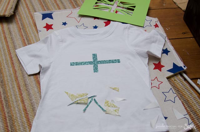 I placed the cut outs on the front of the T-Shirt. I like to make sure the colours and patterns work well.