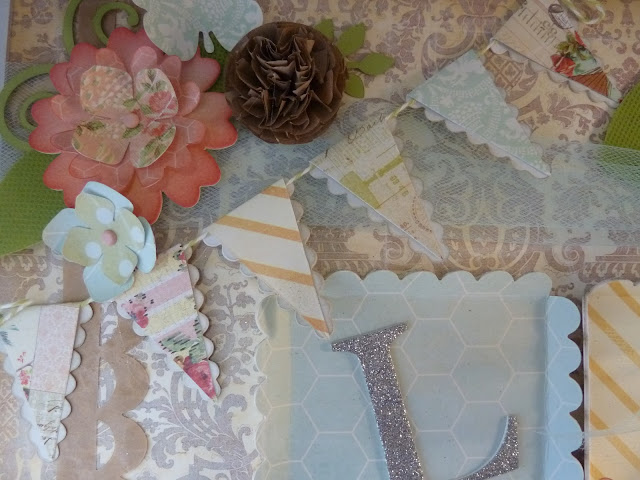 Pennants were cut from paper on the cupcake die and strung across the page on twine.