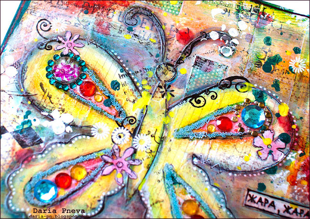 Daria is here. And today I would like to show you a mixed-media cover for notebook. This notebook is for my little daughter. She loves summer, butterflies and bright colors.