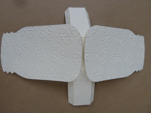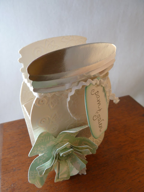 Die cut Canning Jar. To create a three dimensional project you will need to cut a second jar piece. Emboss all pieces using Rosebud Textured Impression folder. You might have noticed, I debossed the inner well section and embossed the front of the jars. Oops. That's OK...